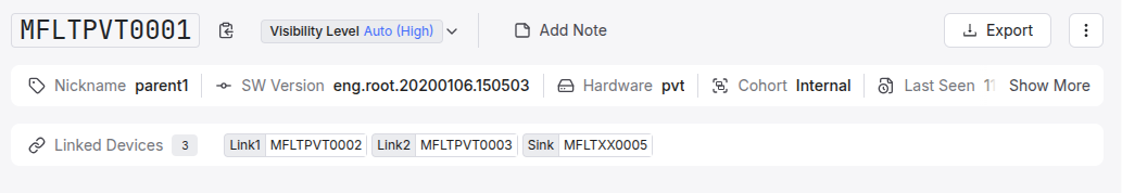 A new Linked Devices bar on the Device Detail page makes related devices permanently visible without expanding the header. For products where a gateway, companion app, or companion hardware are paired to the primary device, this surfaces those relationships right where you need them during debugging.
