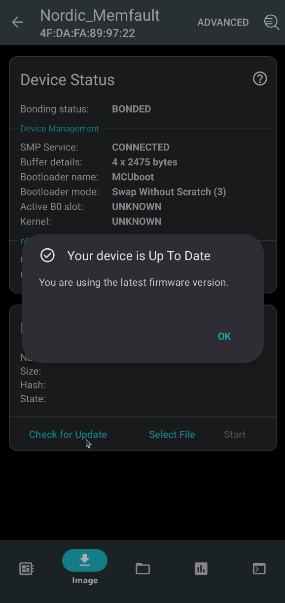First, open the nRF Connect Device Manager app on your mobile Device. Choose
