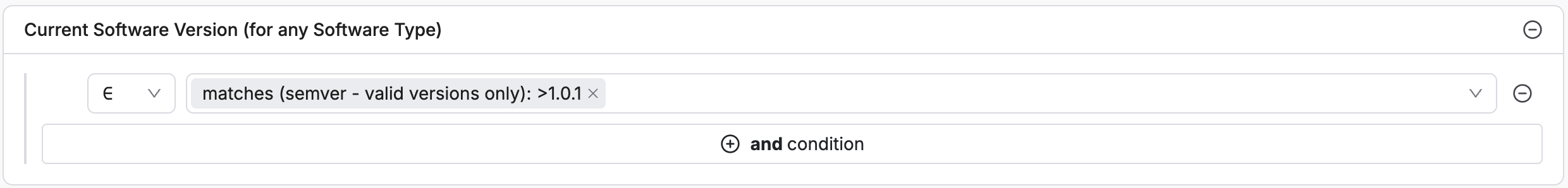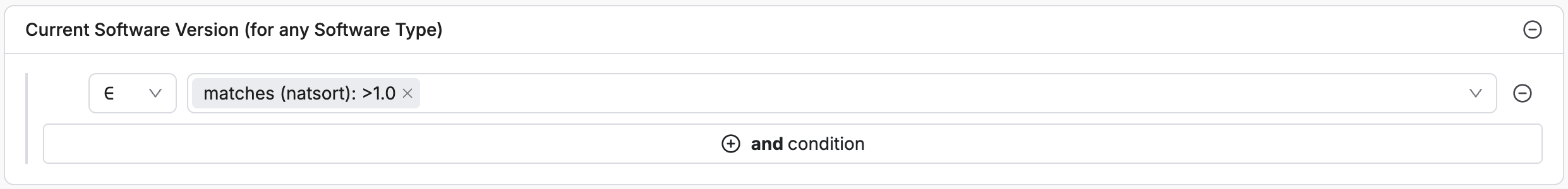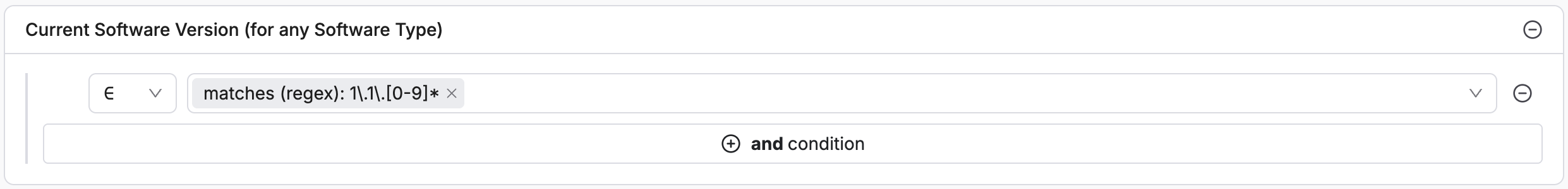 The Software Version filter supports several ways to match or exclude versions. Multiple expressions or values within a single filter row are logically OR'd together.